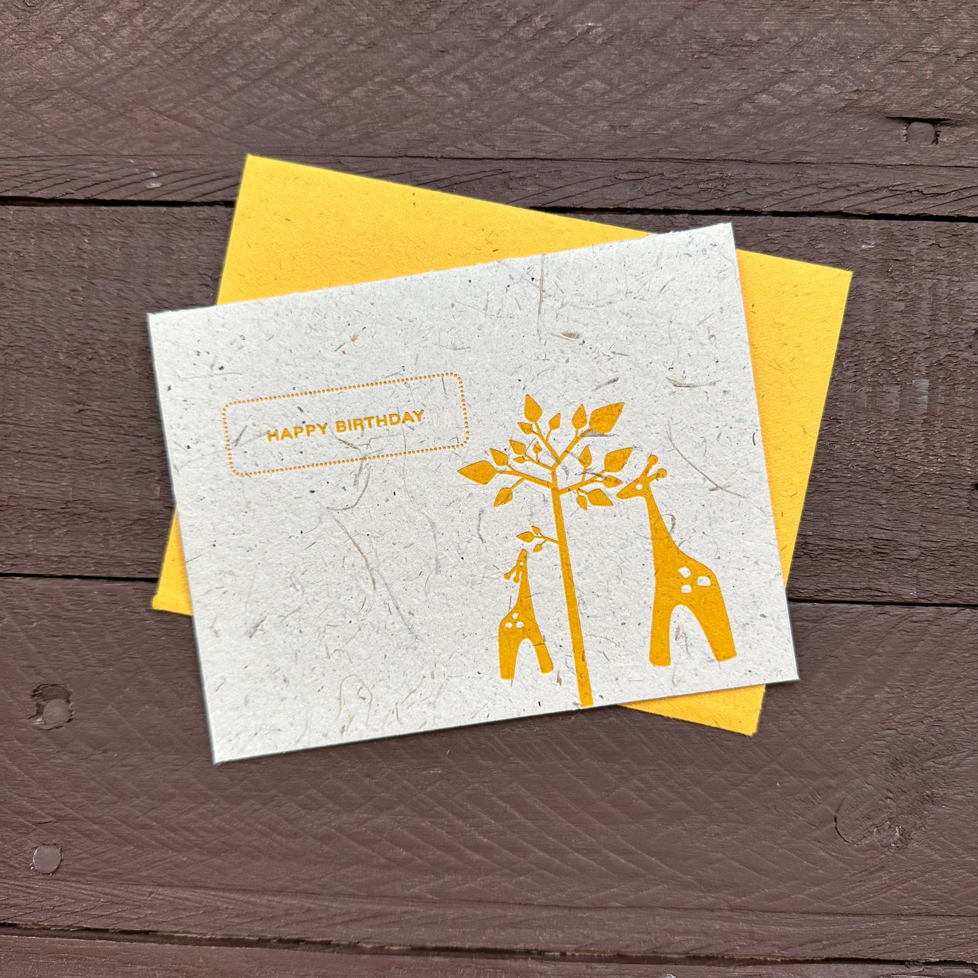 Soar to new heights of birthday joy with our Happy Birthday Giraffe Letter Press Single Card. Born from the innovative elephant dung paper by Mr. Ellie Pooh, this card features a towering giraffe, symbolizing grace and uniqueness, making it the perfect choice for extending birthday wishes that stand tall above the rest, all within an eco-conscious framework.