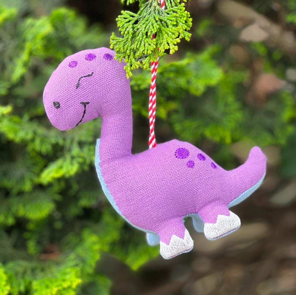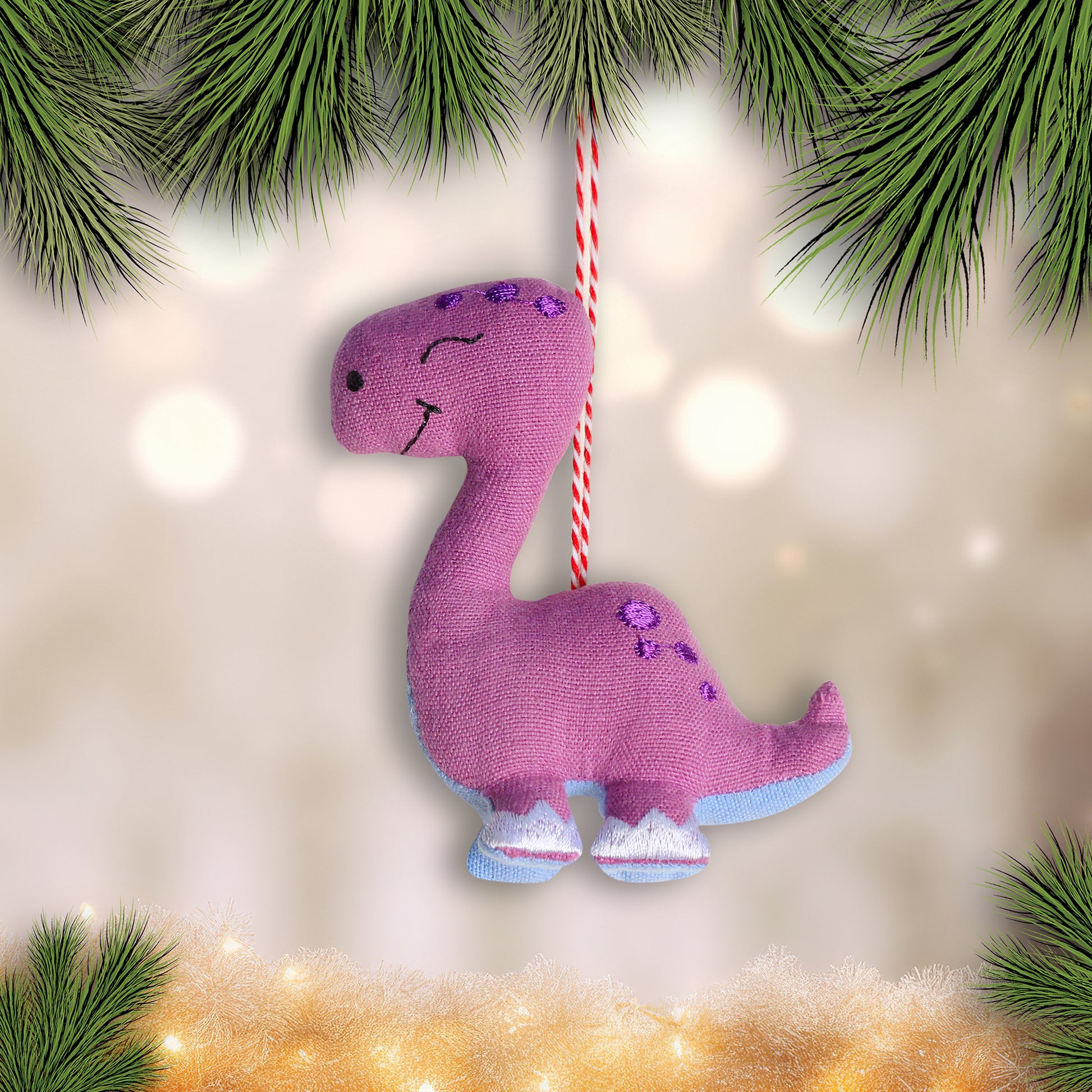 This charming dinosaur ornament isn't just for adorning your tree; it's also a whimsical plaything that encourages imaginative play among the little ones. It's designed to be chew-safe and is easy to clean, making it a perfect companion for children during the holiday season and beyond.