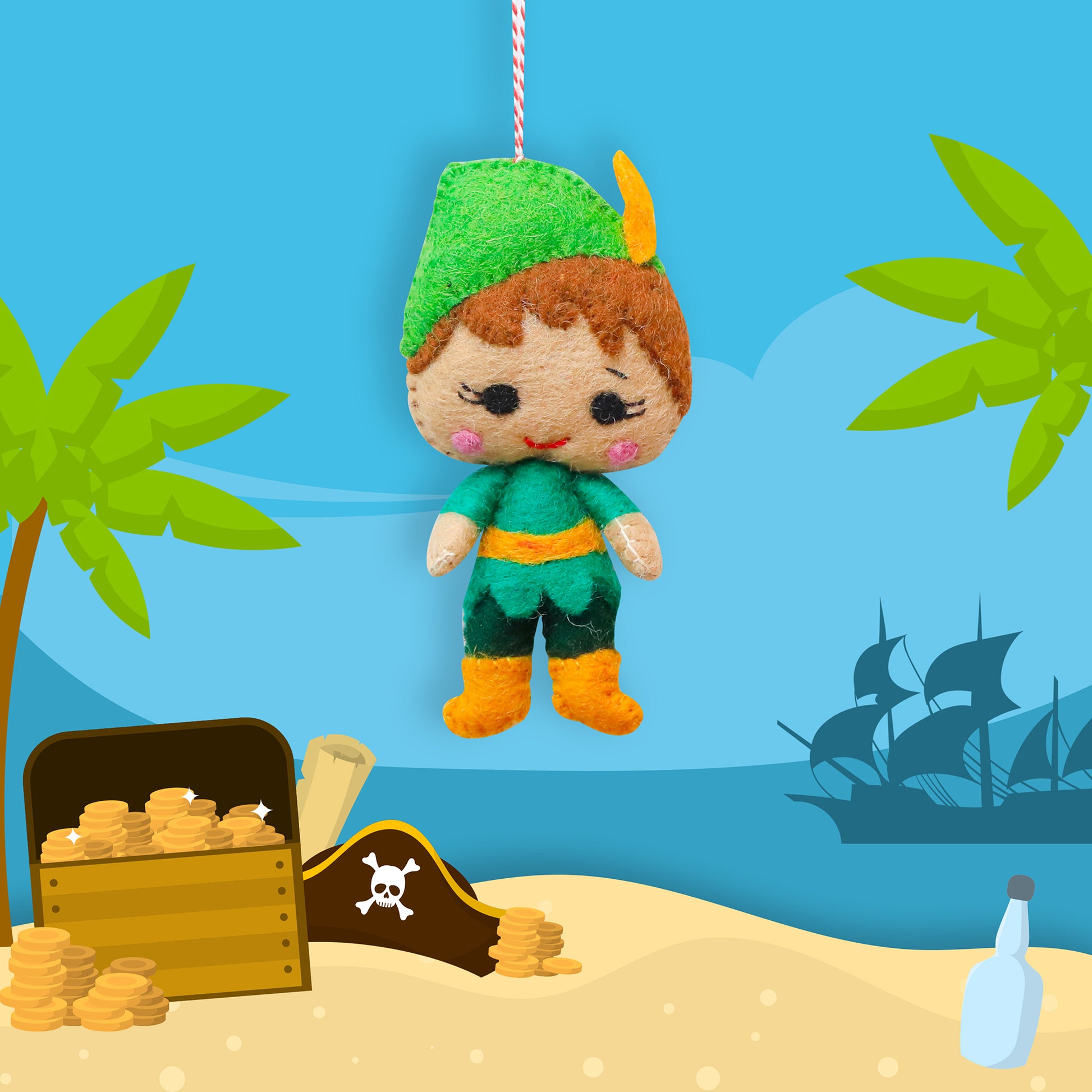 Let your imagination soar with this handmade felt ornament inspired by a brave, adventurous boy who never grows up! Dressed in his signature green outfit with a feather in his cap, this charming ornament is a delightful nod to a classic tale of fantasy and adventure. Crafted by skilled artisans in Nepal using eco-friendly and fair-trade felt, this ornament is perfect for adding a touch of whimsy to your holiday decor or as a unique gift for dreamers of all ages.