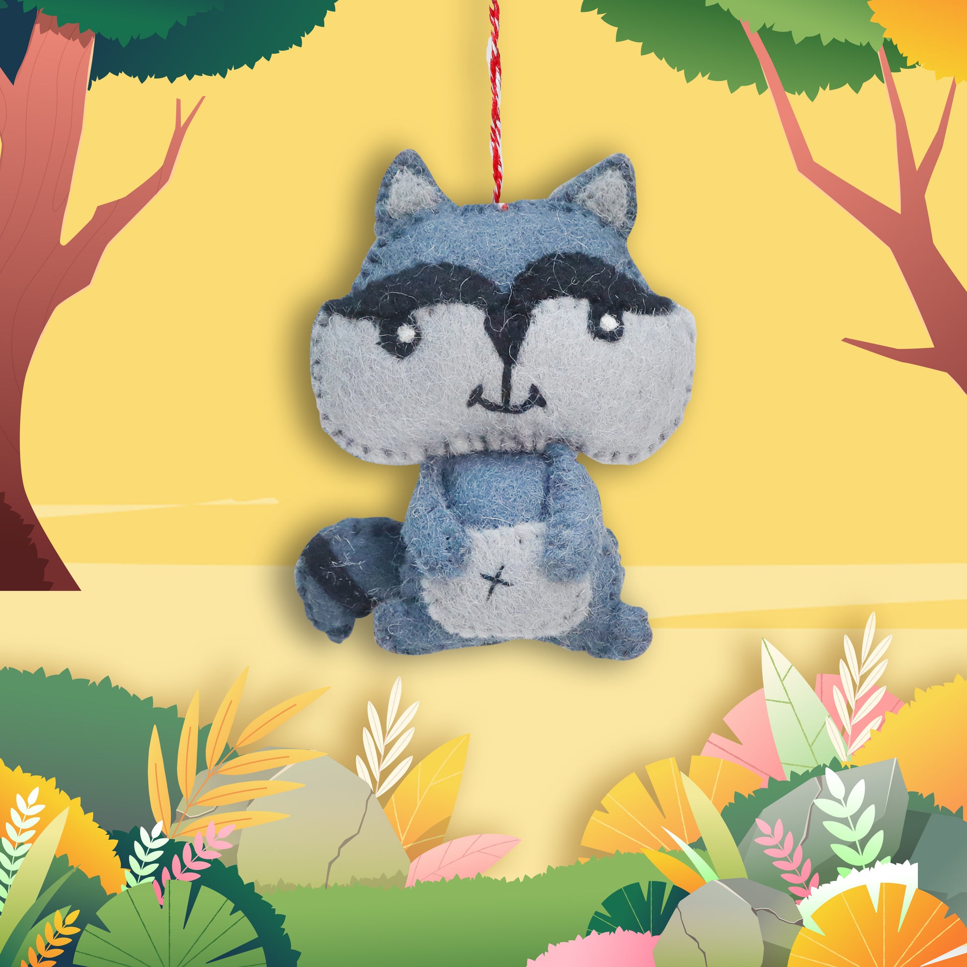 Discover the irresistible charm of our Racoon felted ornament! Handcrafted with meticulous care and attention to detail, this adorable creation is the perfect addition to your Christmas tree. Crafted by skilled artisans in Nepal, each ornament is a testament to their expertise and dedication. Elevate your holiday decor with the unique appeal of this Racoon ornament, guaranteed to bring joy and whimsy to your festive season. Add a touch of personality to your tree with this delightful creation, lovingly made with craftsmanship and care. Get ready to make your Christmas tree stand out with the cutest Racoon ornament you've ever seen!