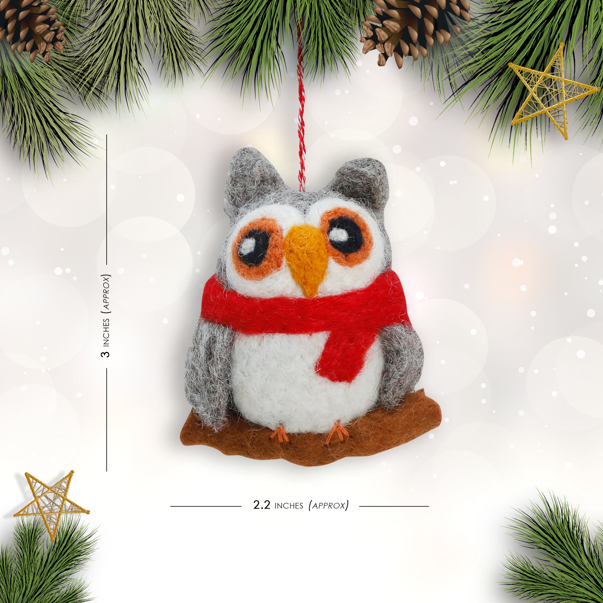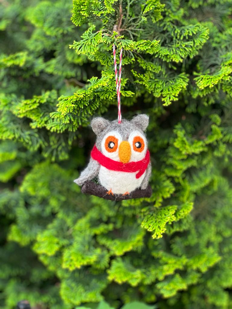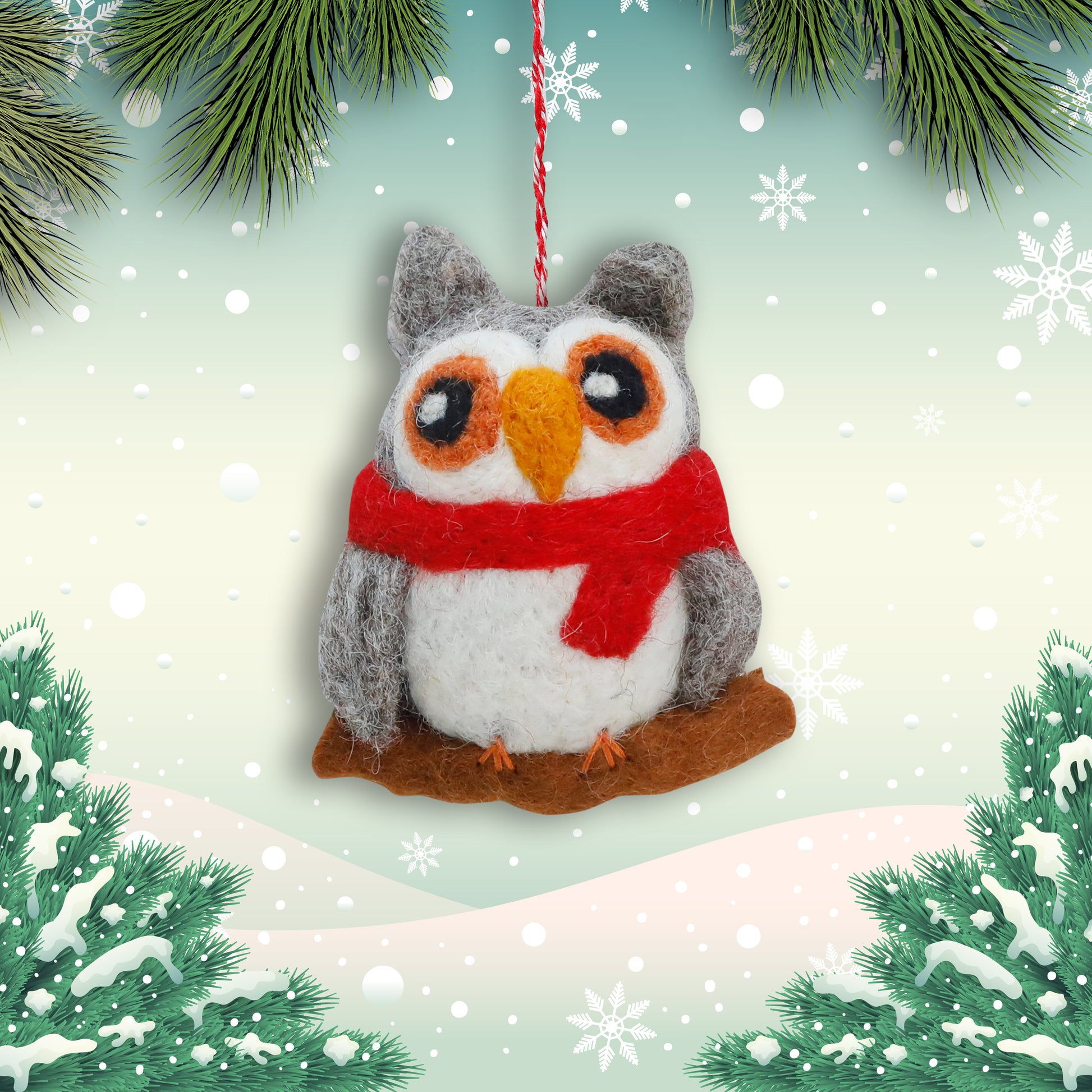 Introducing our adorable Owl felted ornament, meticulously crafted by skilled artisans in Nepal! Elevate your holiday decor with this charming creation, designed to add a touch of whimsy and woodland magic to your Christmas tree. Made with love and attention to detail, each ornament is a unique piece of art that showcases the talent and dedication of our artisans. Bring joy and delight to your festivities with this delightful Owl ornament, guaranteed to spark admiration and wonder. Don't miss out on the opportunity to adorn your tree with the cutest Owl ornament you've ever seen!