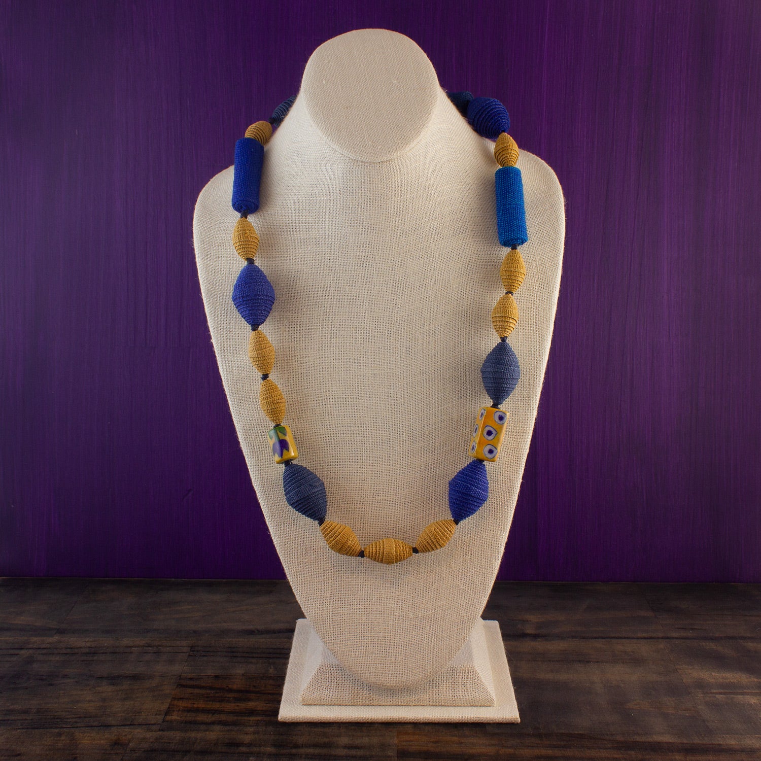 Each bead is meticulously handmade in Sri Lanka from 100% cotton fabric. The fabrics used in the necklace are woven with yarn that is colored using AZO-free, PCP tested, eco-friendly dyes, ensuring both quality and sustainability.