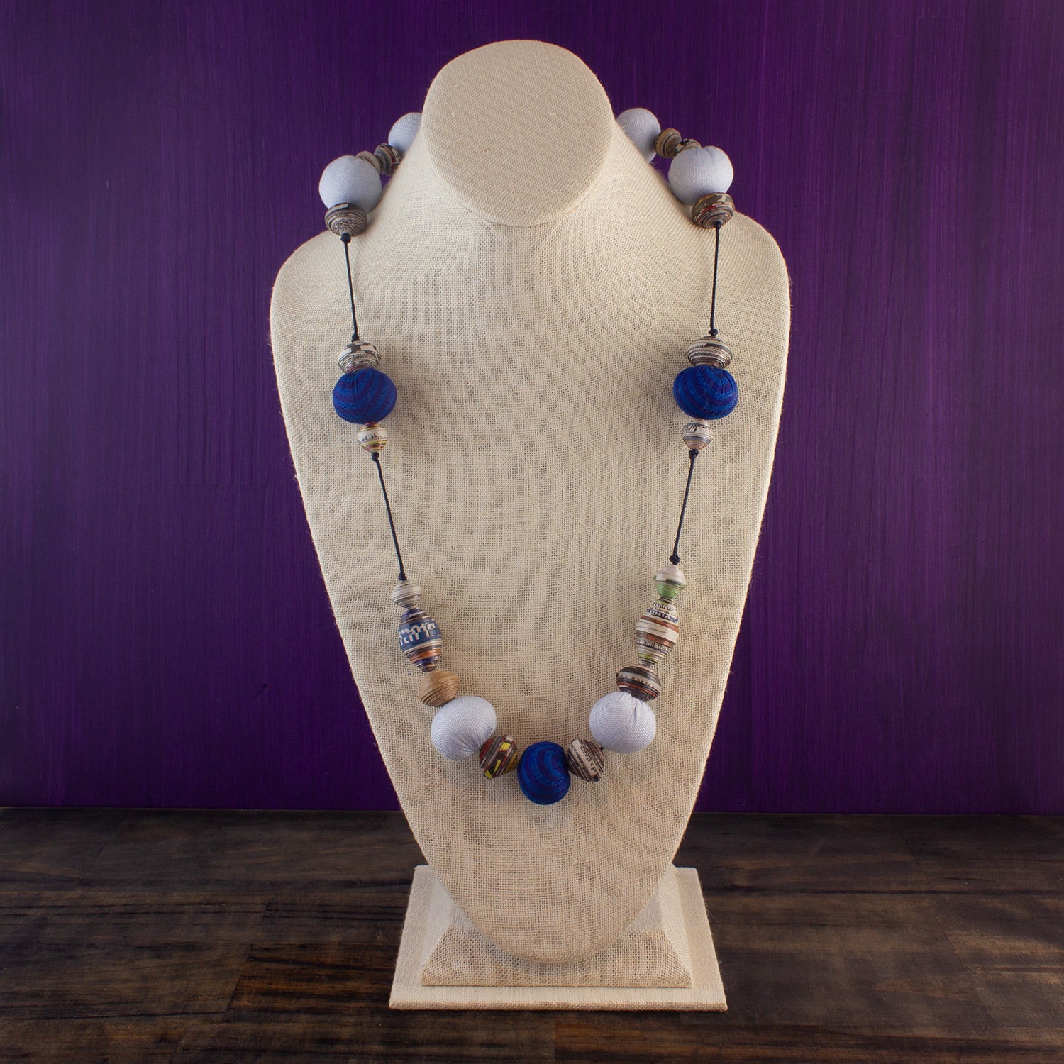 Each bead is meticulously handmade in Sri Lanka from 100% cotton fabric. The fabrics used in the necklace are woven with yarn that is colored using AZO-free, PCP tested, eco-friendly dyes, ensuring both quality and sustainability.