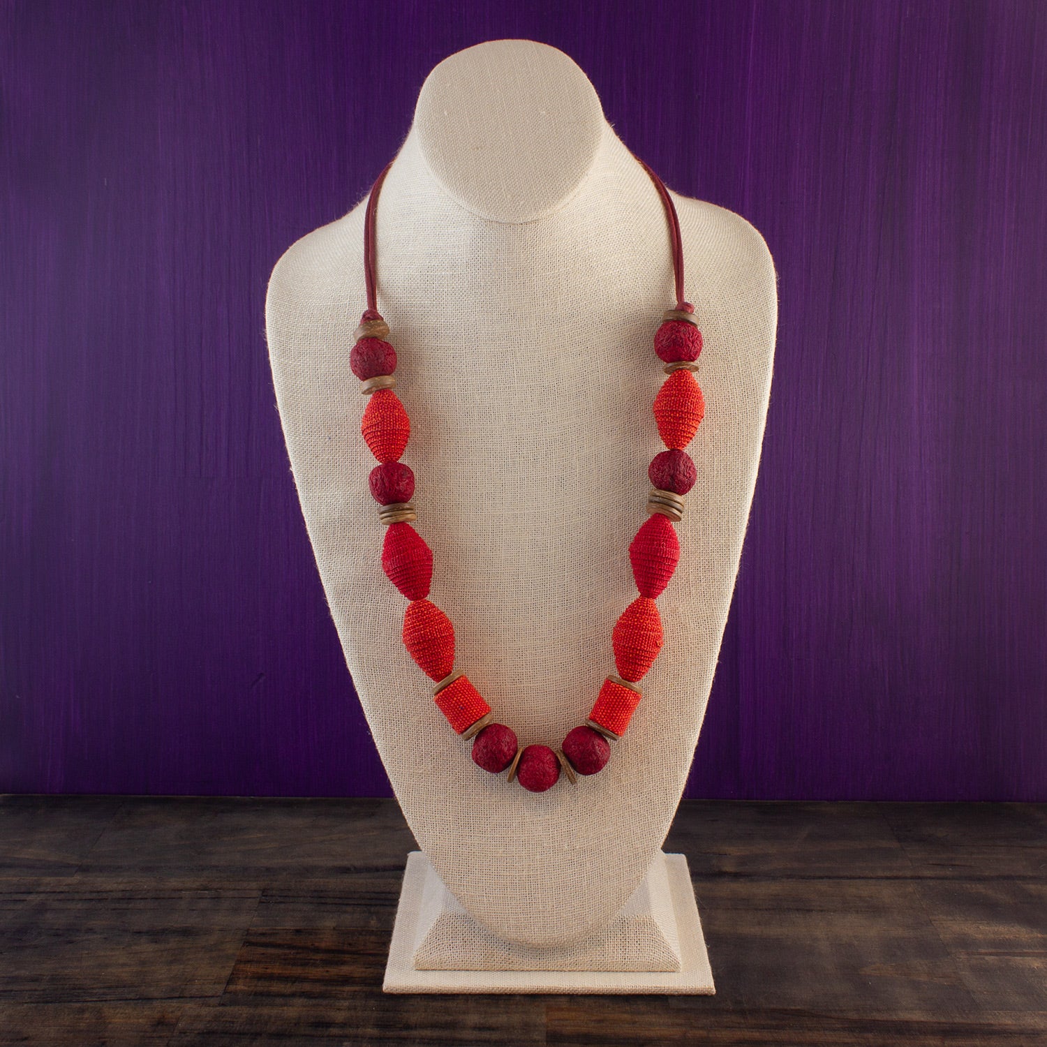 Bring a touch of handmade charm and eco-consciousness to your wardrobe with our Colorful Fabric Bead Necklace today!