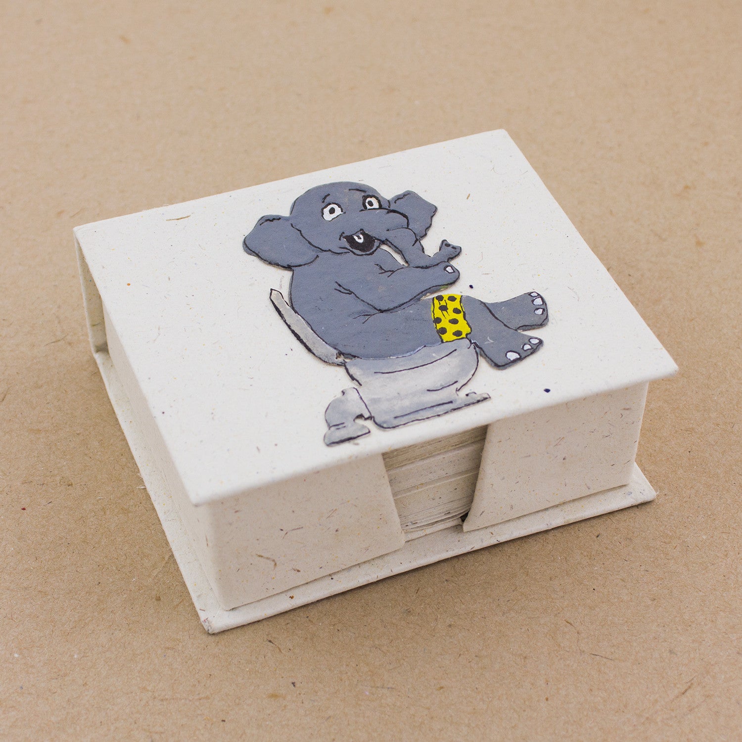 Introduce a dose of whimsy into your daily tasks with our Elephant on Toilet Note Box, a playful yet profound nod to sustainable living and elephant conservation. This unique note box revolutionizes the way you jot down reminders, doodles, or heartfelt messages by offering an eco-conscious alternative to traditional sticky notes. Crafted from compostable poo paper, each box is filled with approximately 80 sheets of fine writing paper, ensuring your notes are both environmentally friendly and delightfully distinctive.