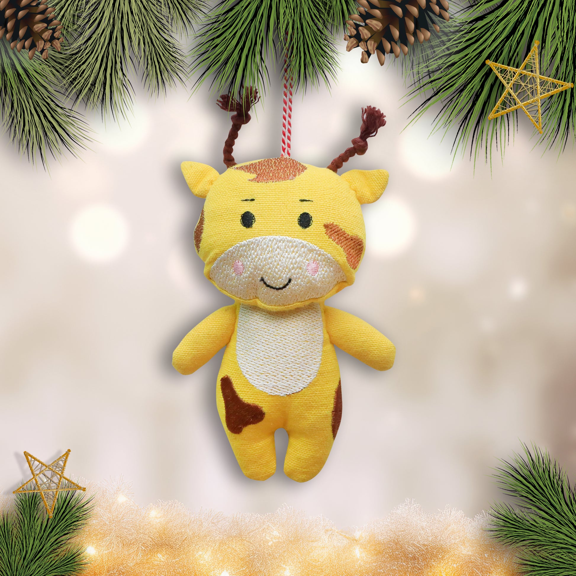 Add a touch of playful charm to your holiday décor with this adorable handmade giraffe ornament. Crafted from soft, organic cotton, this cheerful giraffe features cute embroidered details and braided horns, making it the perfect addition to any tree or nursery. Its bright yellow and brown colors and friendly smile bring warmth and joy, making it a great gift for animal lovers or children. Fair trade and eco-friendly, this ornament supports artisans while adding a unique touch to your seasonal decorations.