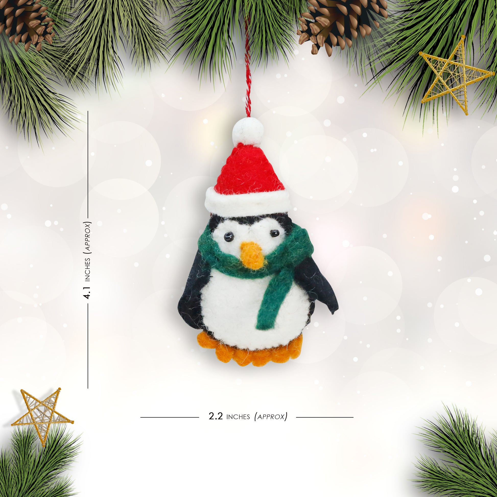 Welcome the cutest addition to your holiday decor with Mr. Ellie Pooh's Christmas Penguin Ornament! This adorable felted creation is lovingly handcrafted, ensuring that each piece is a distinctive work of art. Skilled artisans in Nepal pour their dedication and craftsmanship into every ornament, making it not just a decoration but a piece of art that tells a story. With its charming design and endearing presence, this Penguin ornament is poised to bring joy, delight, and a touch of whimsy to your festive season. Perfect for anyone looking to infuse their Christmas tree with personality and unique flair, this Penguin ornament promises to be a joyful highlight of your holiday decorations. Prepare to spread holiday cheer and make memorable moments with the cutest Penguin ornament by Mr. Ellie Pooh as the star of your Christmas display!