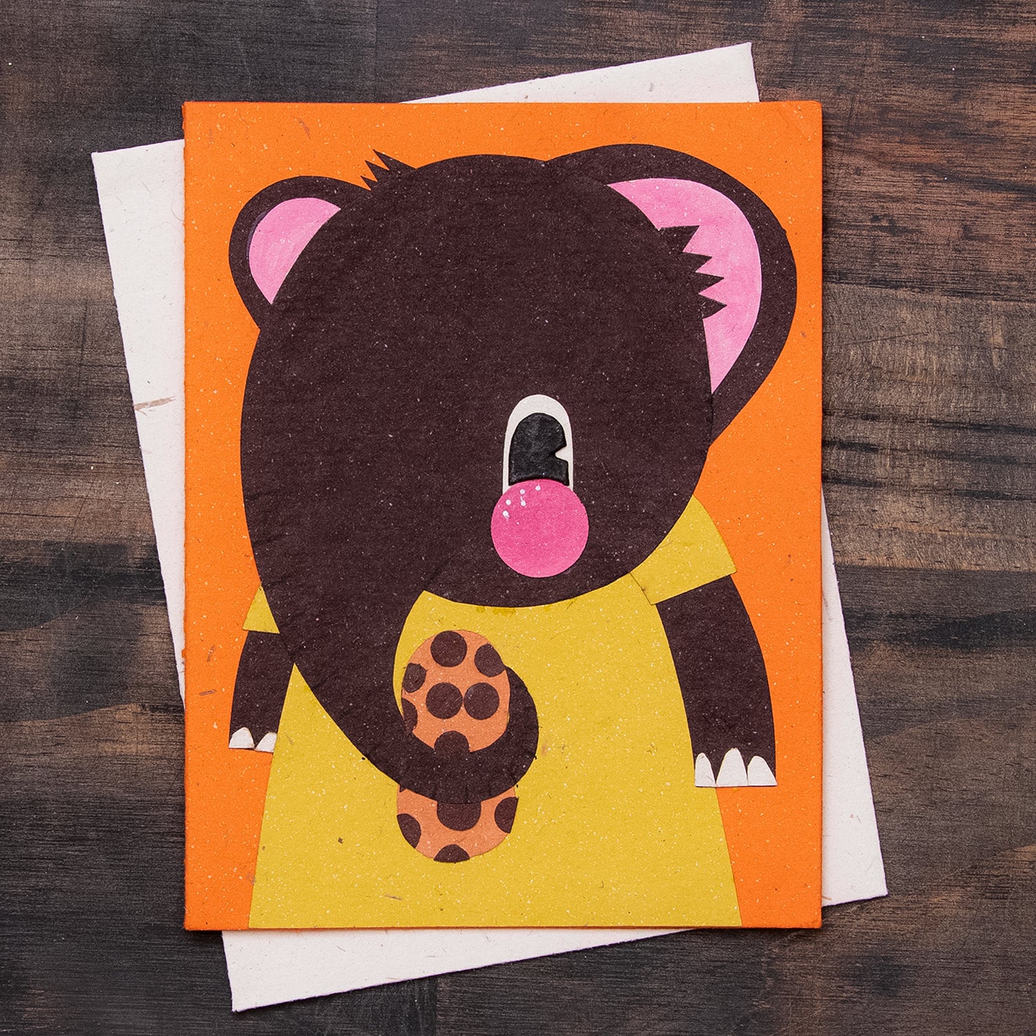 Inside each card, you'll find a blank insert of fine writing poo paper, ready to carry your personal messages. Whether celebrating a milestone, expressing gratitude, or just sending a note of encouragement, this card offers a unique backdrop that’s sure to leave a lasting impression, embodying the strength, wisdom, and calm of Eddie the Elephant.