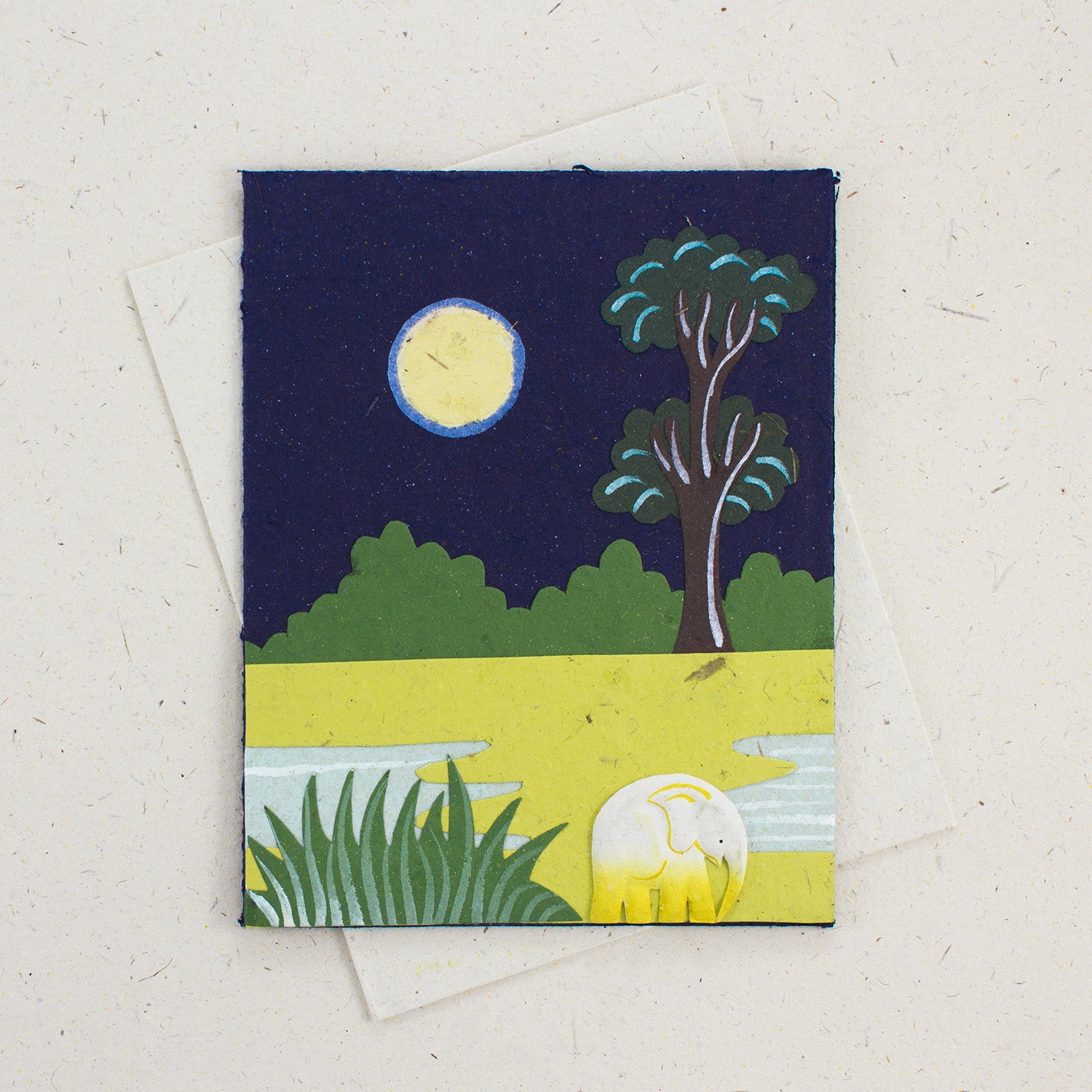 Delve into the depths of the animal kingdom with our Elephant Single Greeting Card in Dark Blue, a piece that marries the grandeur of elephants with the innovative approach of environmental sustainability. Crafted from Mr. Ellie Pooh's unique elephant dung paper, this card stands as a symbol of our commitment to protecting these magnificent creatures and their habitats.