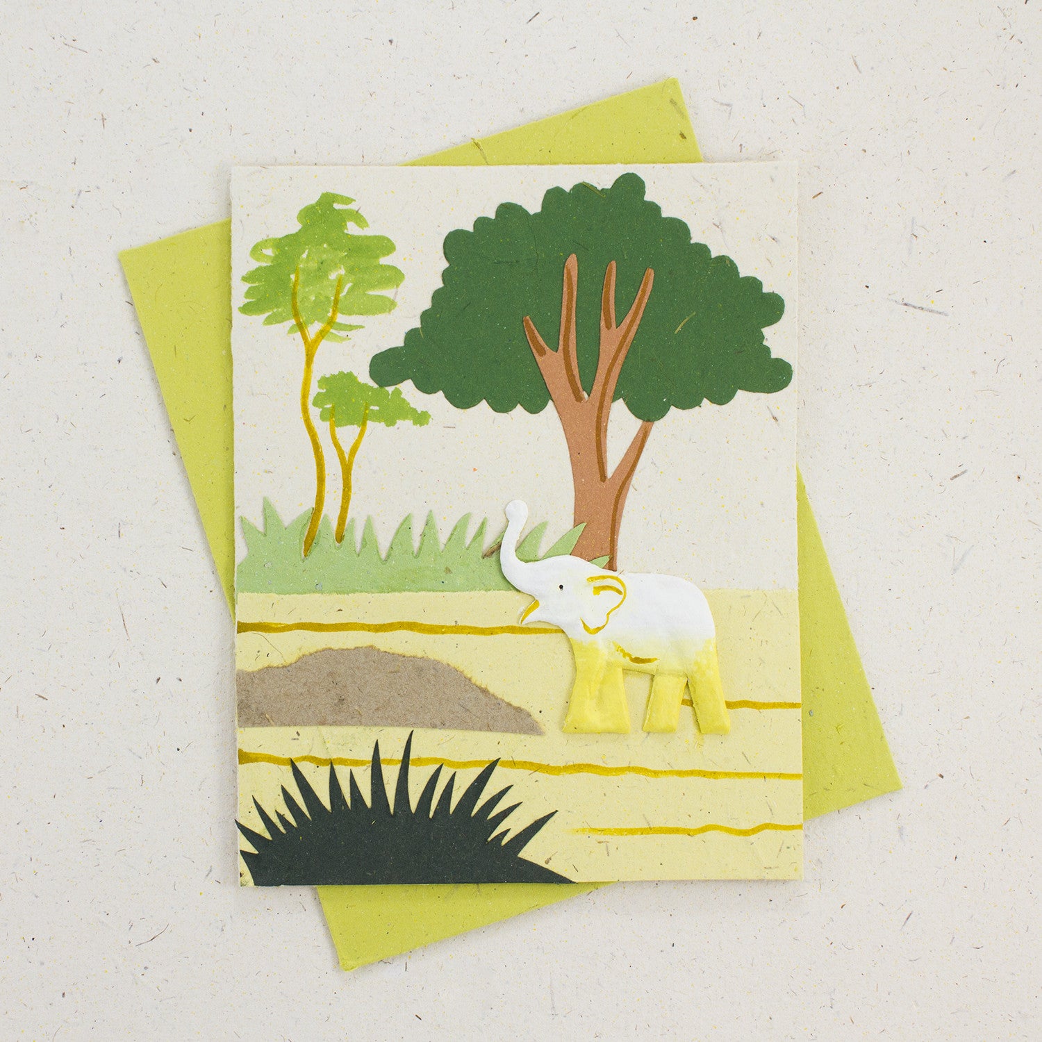 Inside each card, a blank insert of fine writing poo paper awaits your personalized message. Whether commemorating a special milestone, offering words of encouragement, or simply sending a note of appreciation, this card provides a pristine, natural white backdrop that enhances the dignity and gentle might of the elephant, making every word you write resonate with deeper meaning.