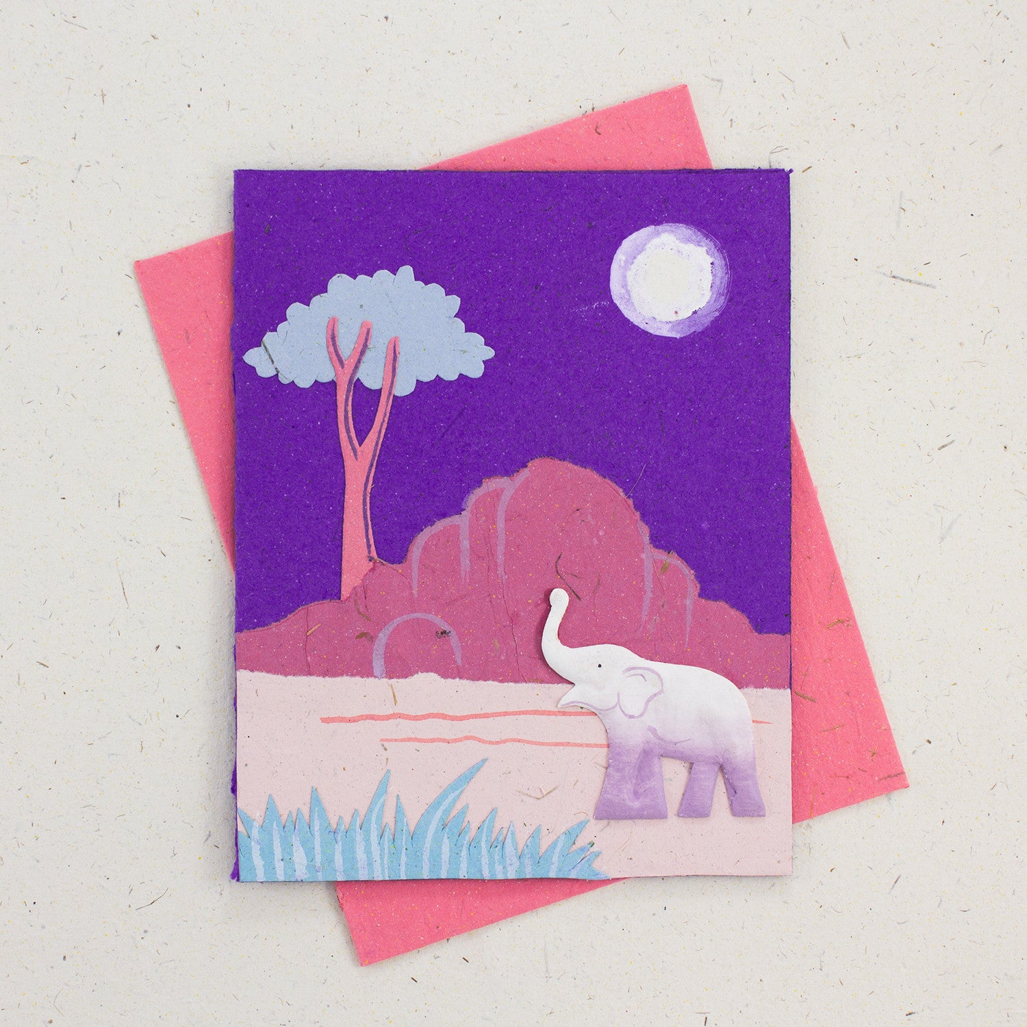 Step into a world where elegance meets environmental consciousness with our Elephant Single Greeting Card in Purple, a regal tribute to the majestic elephant. Crafted from Mr. Ellie Pooh's revolutionary elephant dung paper, this card encapsulates the grandeur of these magnificent creatures while upholding a commitment to sustainability and the preservation of wildlife.