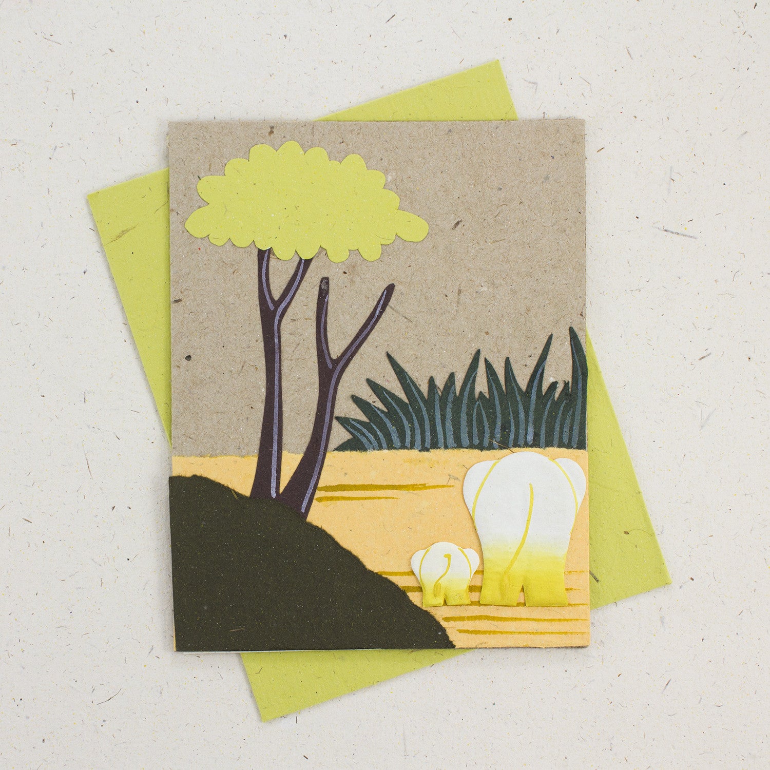 Upon opening this card, you're greeted by a blank insert of fine writing poo paper, providing a warm, natural canvas for your heartfelt messages. Whether celebrating a milestone, expressing gratitude, or simply sending a note of affection, this card's organic appeal and the serene silhouette of an elephant combine to create a deeply meaningful gesture that resonates with the spirit of conservation and care.