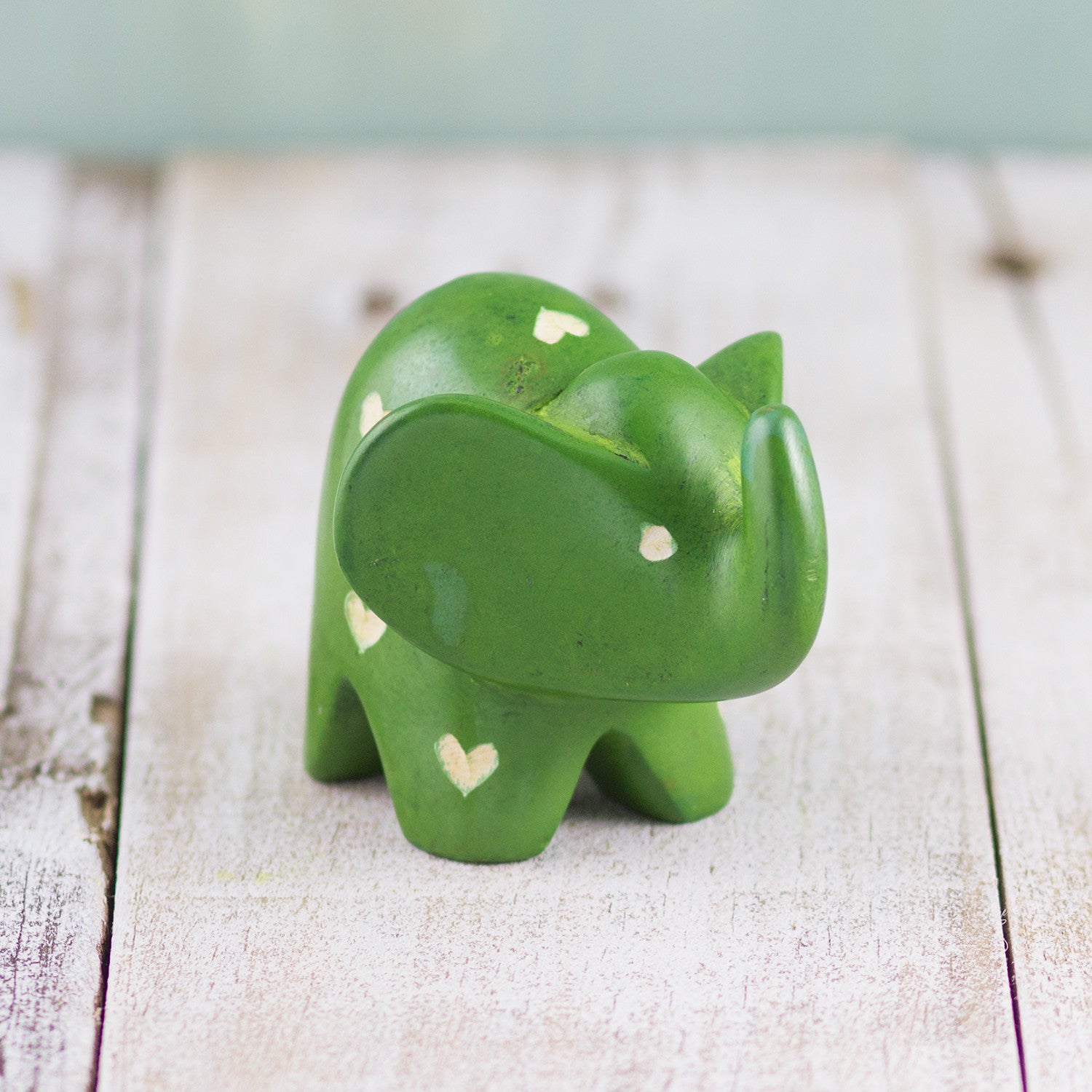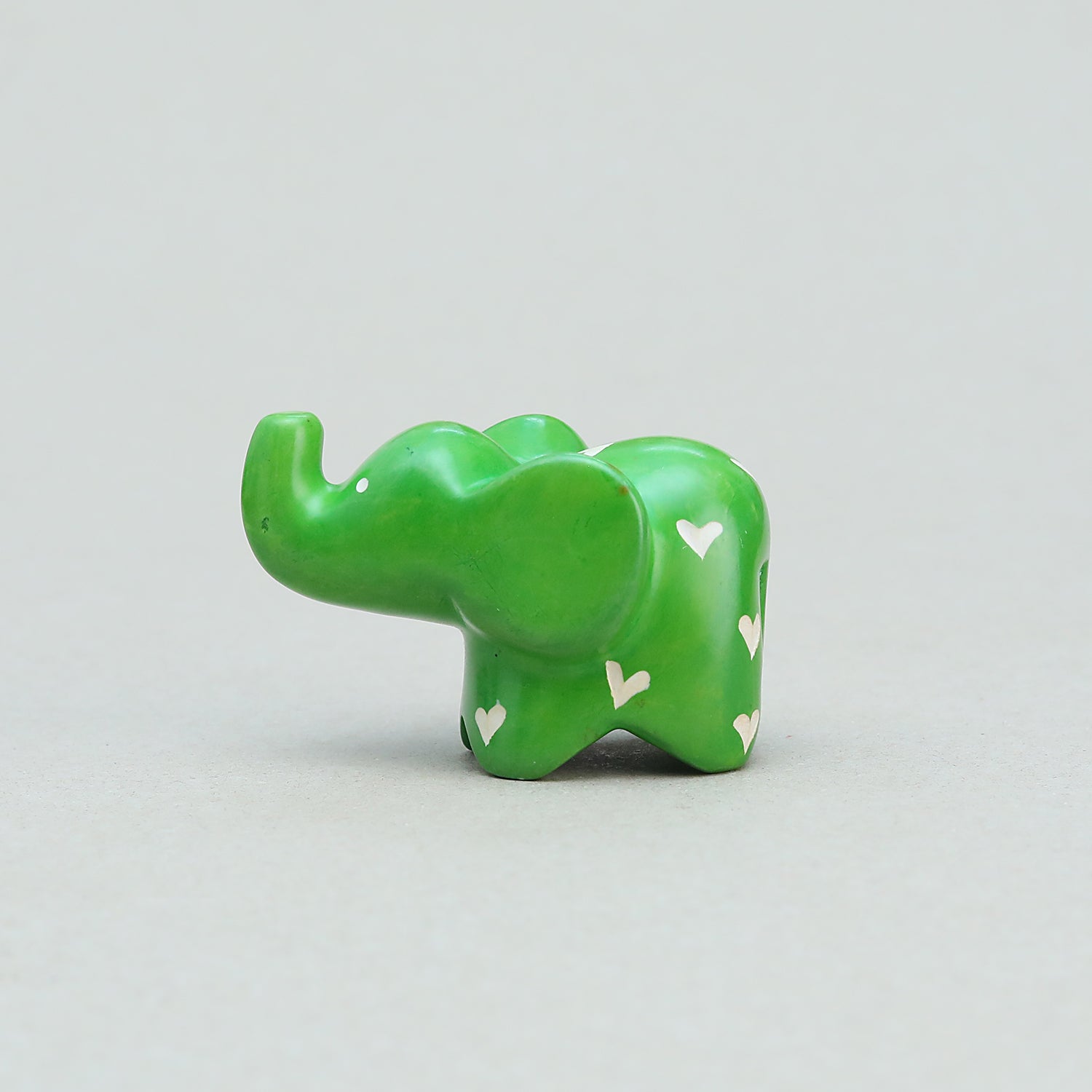 Measuring between 2 to 3.5 inches, these sculptures strike the perfect balance between decorative appeal and functionality. As no two elephants are exactly alike, owning one means you're in possession of a unique piece of Kenyan artistry. By choosing our Big-Eared Elephant in Green, you're not only enhancing your space with a symbol of nature's majesty but also contributing to the empowerment of Kenyan artisans and the promotion of sustainable craftsmanship.