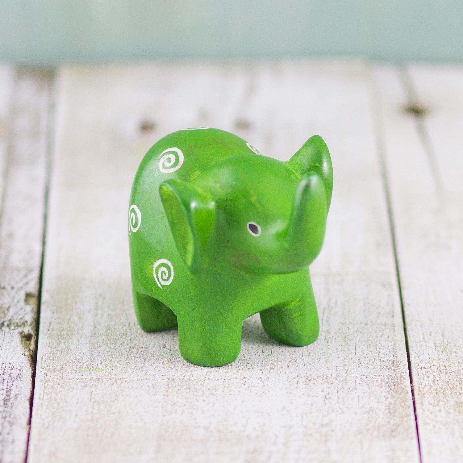 Each elephant is meticulously carved from soapstone, known for its density and velvety smooth texture, making each piece a delight to touch and behold. The unique green hue adds a refreshing pop of color to any room, making it a versatile addition to your home or office décor.