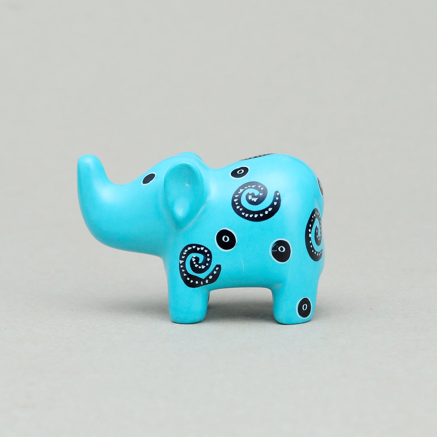 Discover the charm of our Light Blue Small-Eared Elephant Soapstone, a masterpiece crafted by the talented hands of the Tabaha cooperative's artisans in Kenya. This initiative is more than just a cooperative; it's a movement towards eradicating suffering in the Kisii area by ensuring fair trade practices. Mr. Ellie Pooh is committed to these artisans' success, offering them a global platform to showcase their skills and receive fair compensation.
