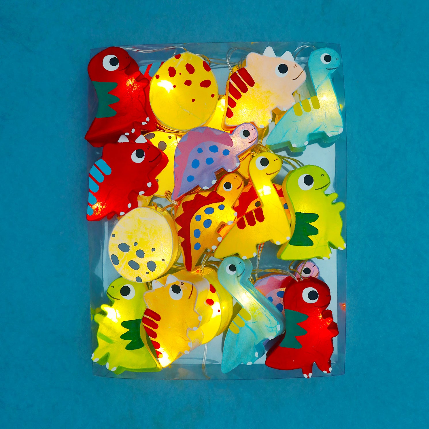 - Playful Dinosaur Designs: Featuring an array of colorful, friendly dinosaurs and dino eggs, these string lights add a playful charm to any room.