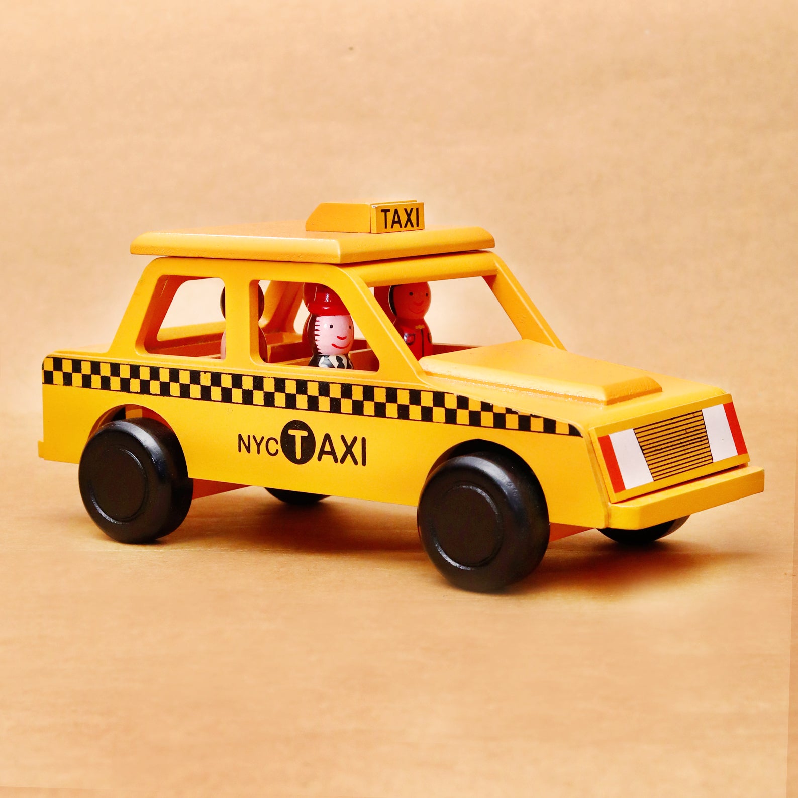 With dimensions of 11.5 inches by 4.5 inches by 4 inches, this taxi is perfectly sized for little hands to grasp and maneuver through imagined cityscapes. Whether it's a bustling day in the city or a quiet afternoon at home, this wooden taxi is ready for action, providing children with hours of engaging play while fostering their imagination and fine motor skills.