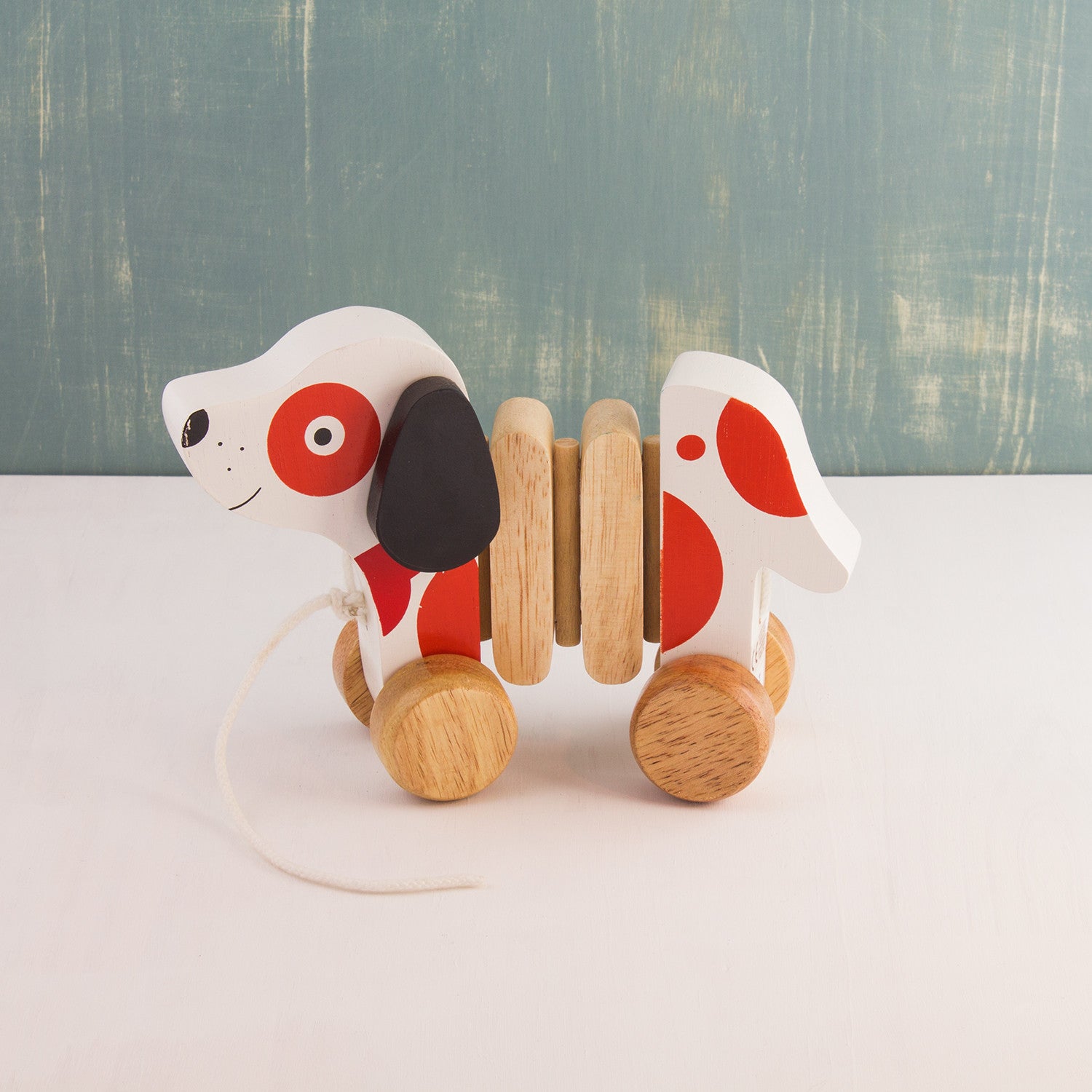 Embark on a delightful journey with our Puppy Dog Pull-Along, a beautifully crafted wooden toy that's perfect for the little explorer in your life. This endearing pull-along toy features a playful puppy, expertly hand-carved and set on smooth-rolling wheels, ready to follow your child on every indoor adventure.