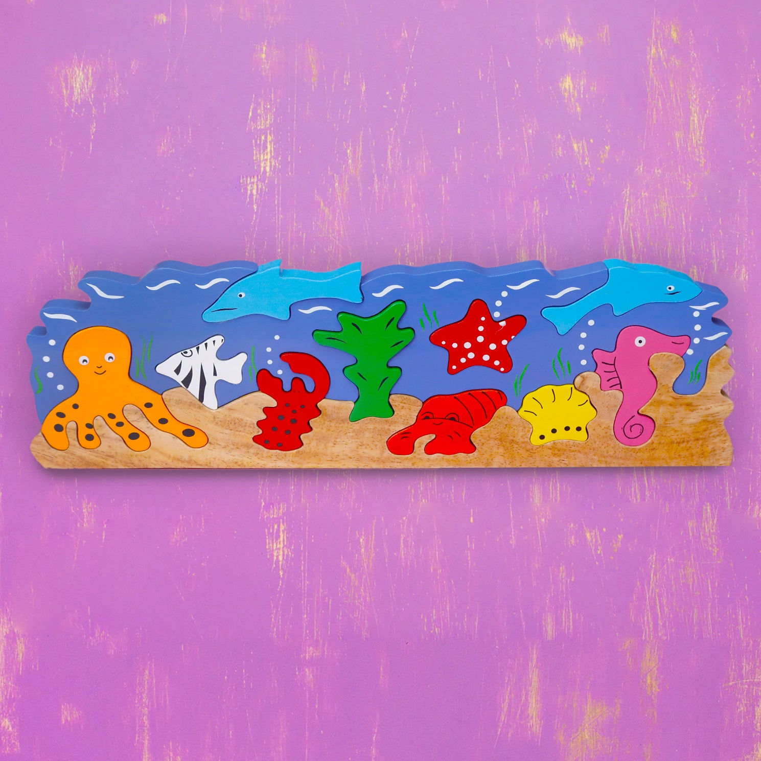 Dive into an underwater adventure with our enchanting Aquarium Puzzle, thoughtfully handcrafted from sustainably sourced rubber wood from Sri Lankan plantations. Embracing both environmental consciousness and the safety of your child, this puzzle is adorned with non-toxic, vibrant paints that meet the strictest US toy safety regulations.