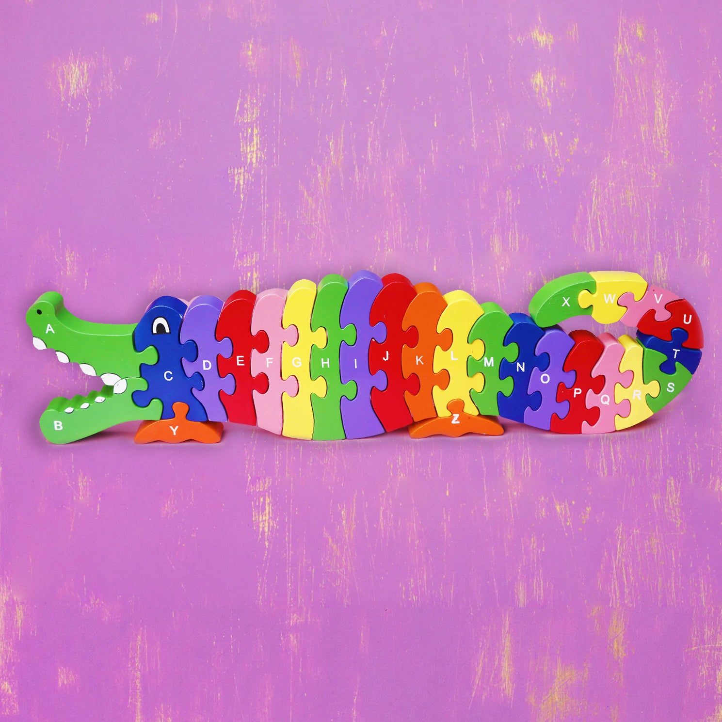 Dive into a world of educational fun with our Crocodile Puzzle, expertly crafted by artisans using rubber wood from the sustainable plantations of Sri Lanka. This puzzle meets the highest safety standards, thanks to its use of non-toxic paints, making it a secure choice for children aged 3 and up.