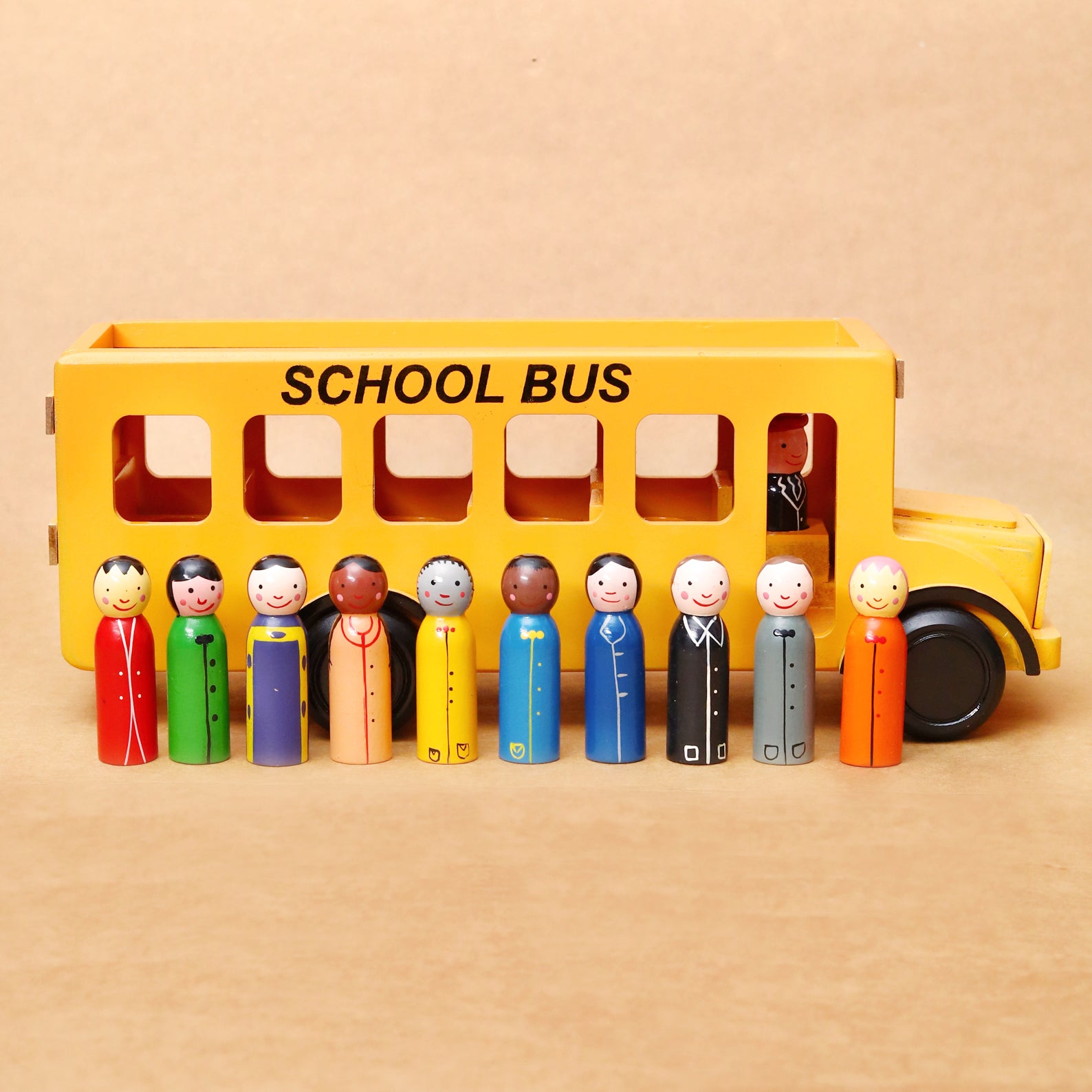 Discover the joy of learning and adventure with our Wooden School Bus, a beautifully designed and eco-friendly toy that brings the classic school journey to life. Perfect for little learners who love to imagine and play, this wooden school bus is complete with a cheerful bus driver, 14 lively school children figures, a removable roof for easy access to the interior, and a detachable seat block to arrange the passengers. The bus is ready to roll into fun with smoothly spinning wooden wheels, ensuring hours of imaginative play.